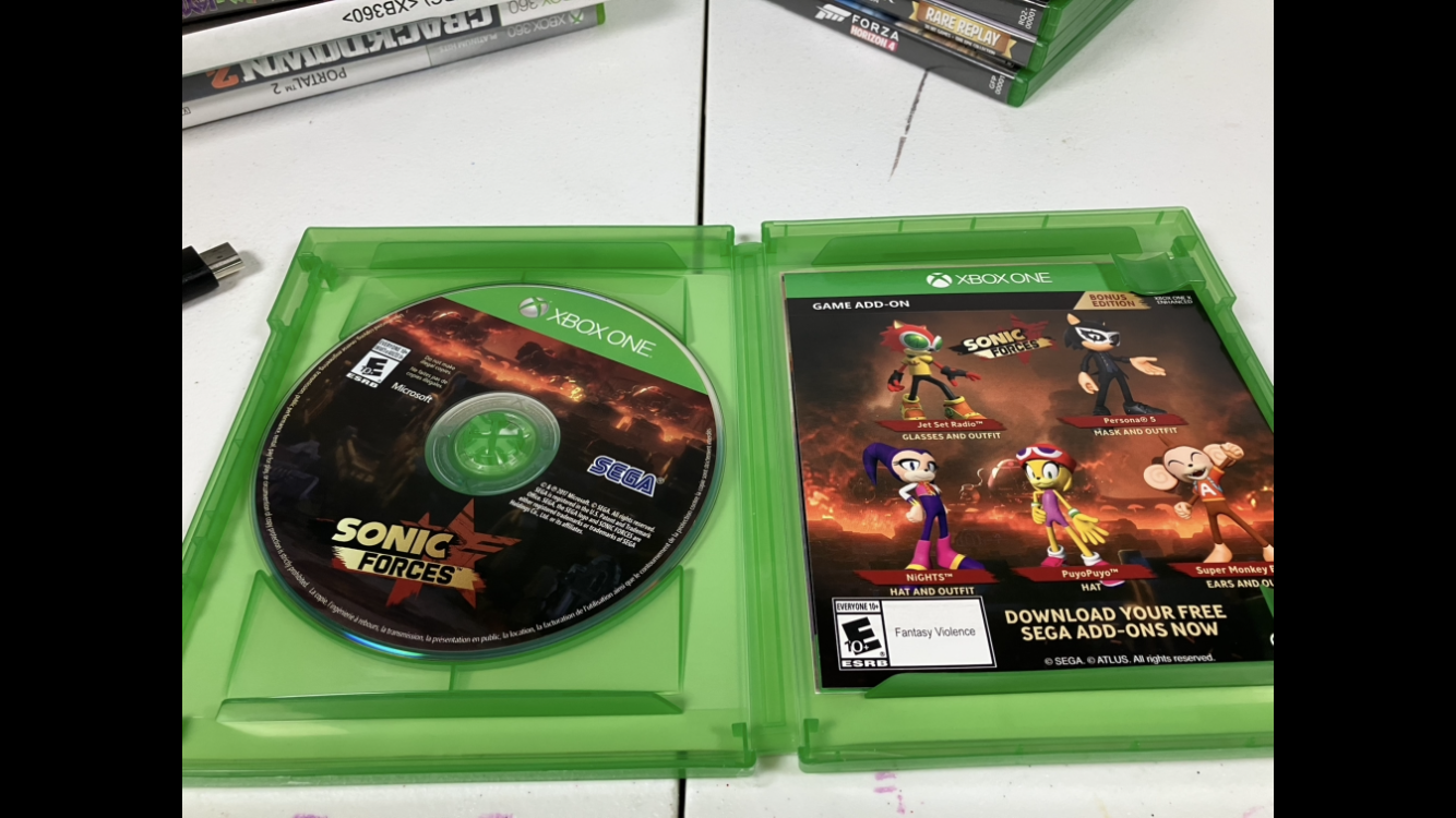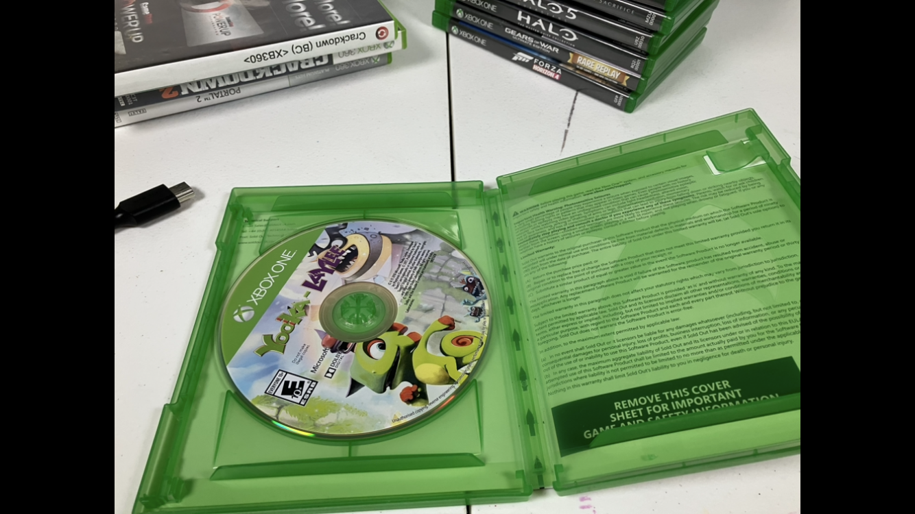 The included games are: Portal 2, Crackdown, Crackdown 2, Forza Horizon 4, Gears of War + Rare Replay (both in one case), Halo Master Chief Collection, Halo 5, Hellblade, Lego Movie 2, Sonic Forces, Sonic Mania Plus, Sunset Overdrive, Wolfenstein New Order + Wolfenstein Old Blood (both in one case) and Yooka-Laylee.
