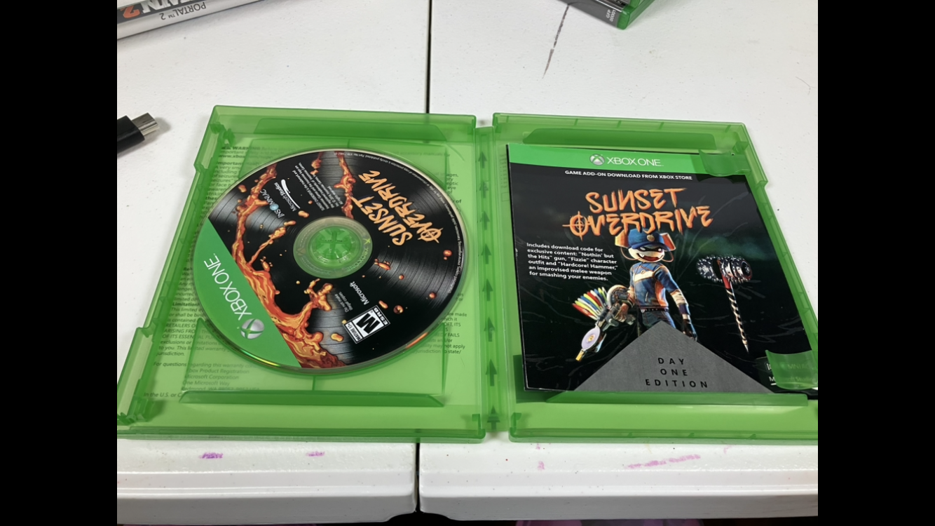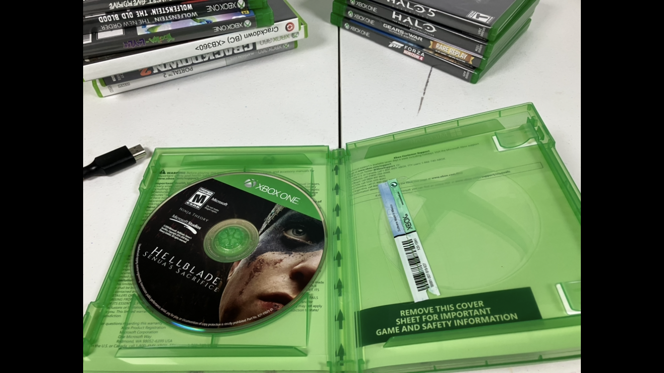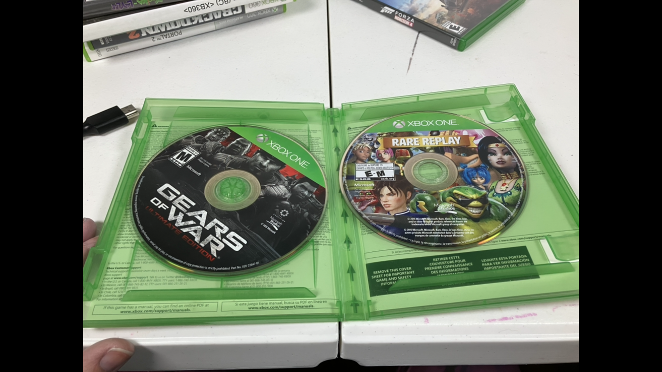 Your eyes do not deceive you, for I am, indeed, selling my XBox One and games. The console has been factory reset and works great. It comes complete with power cord, controller and cable, HDMI cable and no less than 16 games. Plus, as shown in the photos, I have personally signed the console with a silver sharpie.